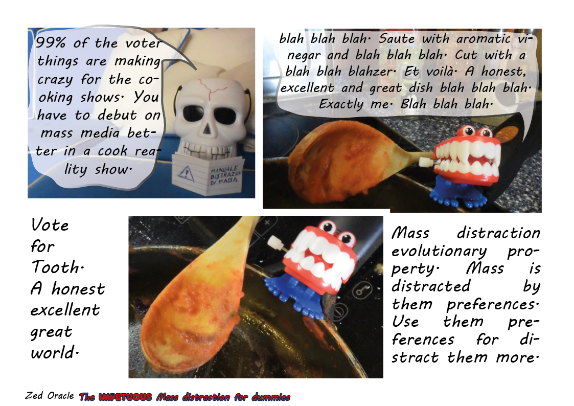 Mass distraction evolutionary property. Mass is distracted by them preferences. Use them preferences for distract them more.